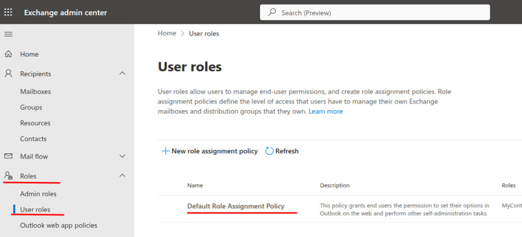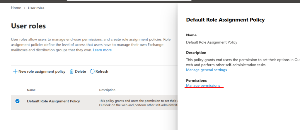 Roller altında Kullanıcı Rolleri’ni seçin. Rol Atama Politikası’na tıklayın ve ardından İzinleri Yönet’e tıklayın.